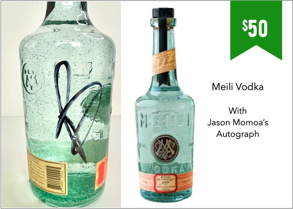 **Must be 21 or older to win this item. Valid ID will be required at time of pickup** MEILI Vodka 750ml autographed by Co-Founder Jason Momoa -"Meili represents the adventurer's heart, the purity of discovery, and the spirit of exploration. Every ingredient is purveyed with the utmost quality and character in mind. Handcrafted by friends, intent to be shared. Inspired by the journey - and those met along the way.